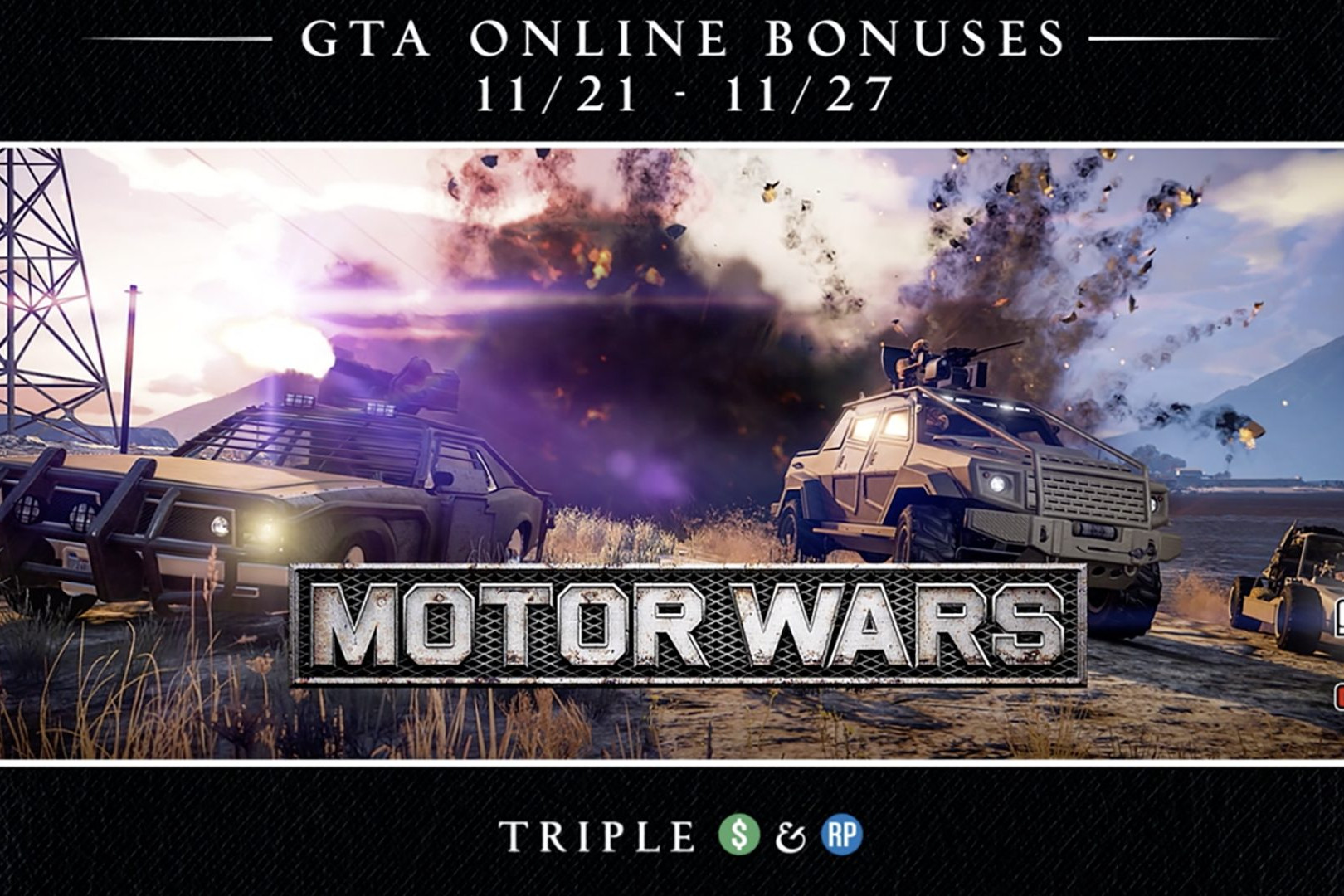Nouvelle semaine spéciale sur GTA Online avec des récompenses doublées !5 décembre 2019by Chris' Klippel Rockstar Games tease la nouvelle mise à jour de GTA Online : Braquage de Casino ?4 décembre 2019by Chris' Klippel La Vapid Peyote Gasser désormais disponible sur GTA Online !28 novembre 2019by Nicolas GTA Online n’est pas prêt de s’arrêter et du nouveau contenu arrive pour Noël !26 novembre 2019by Chris' Klippel Semaine spéciale Guerre Motorisée sur GTA Online avec triple bonus !21 novembre 2019by Chris' Klippel