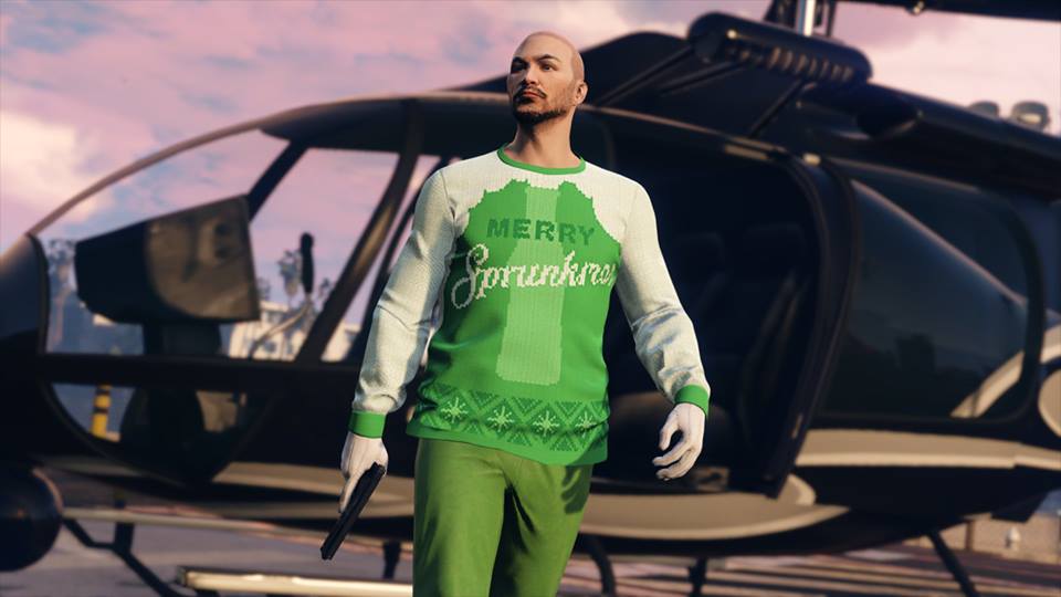 25 décembre : Vapid Clique, pistolet Up-n-Atomisateur, pull festif tueur en série, 5 motifs festifs pour le Chernobog, le lanceur pyrotechnique et 10 feux d’artifice, 25 bombes collantes, 25 grenades, 5 mines de proximité, 5 cocktails Molotov, le plein d’en-cas et protections pare-balles max.