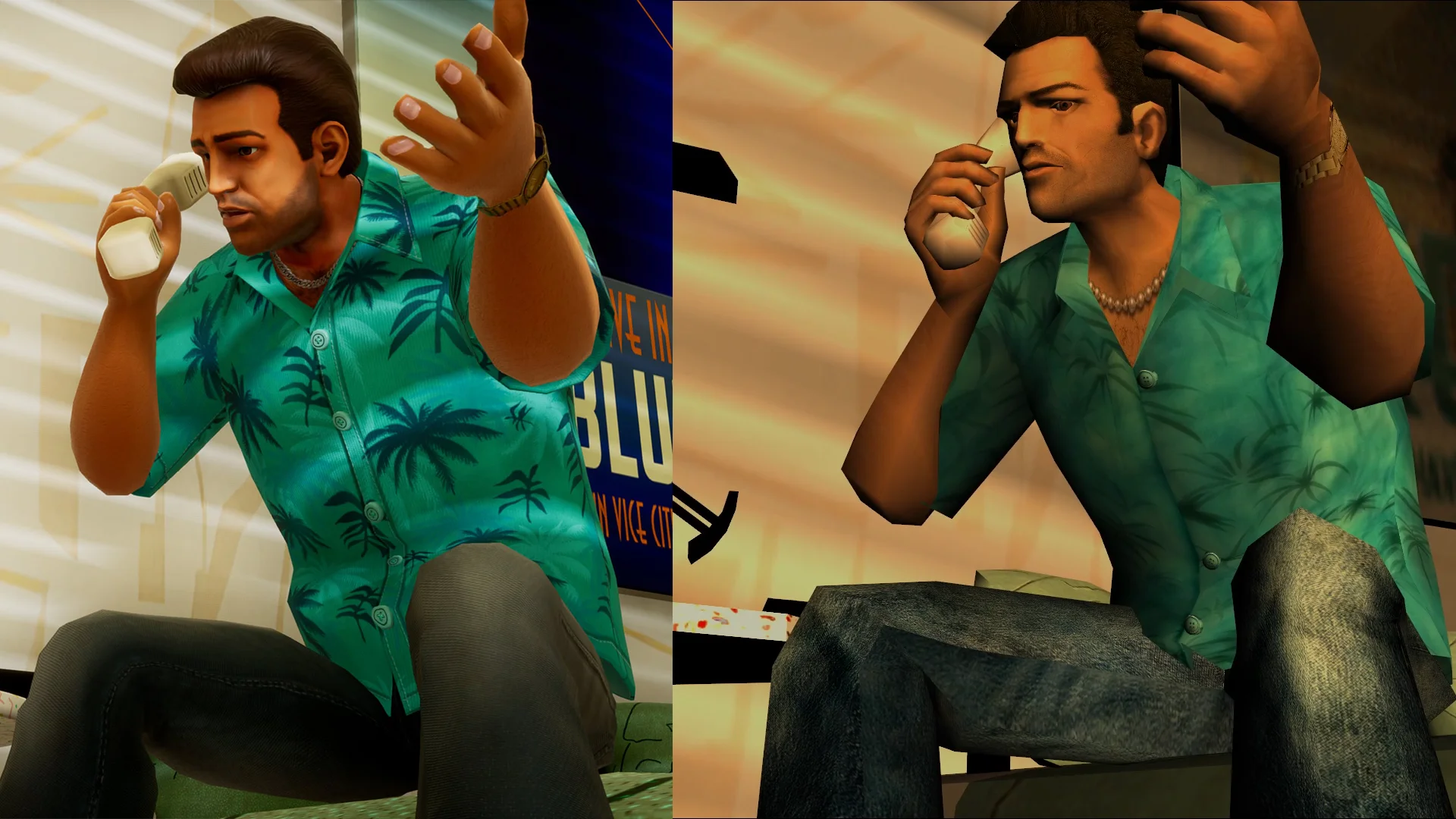 En revanche, les cinématiques originales de GTA Vice City ne peuvent pas être recréées directement sur ce moteur. Elles sont donc intégrées tel quel légèrement retravaillées, (textures HD, fluidité et distance d’affichage uniquement) ce qui permet de maintenir le scénario et les dialogues sans nécessiter de reconstruction complète. C’est en fait une approche hybride. La map et les véhicules sont recréés sur GTA 4 et les dialogues et les cinématiques importés tel quel dans le jeu.