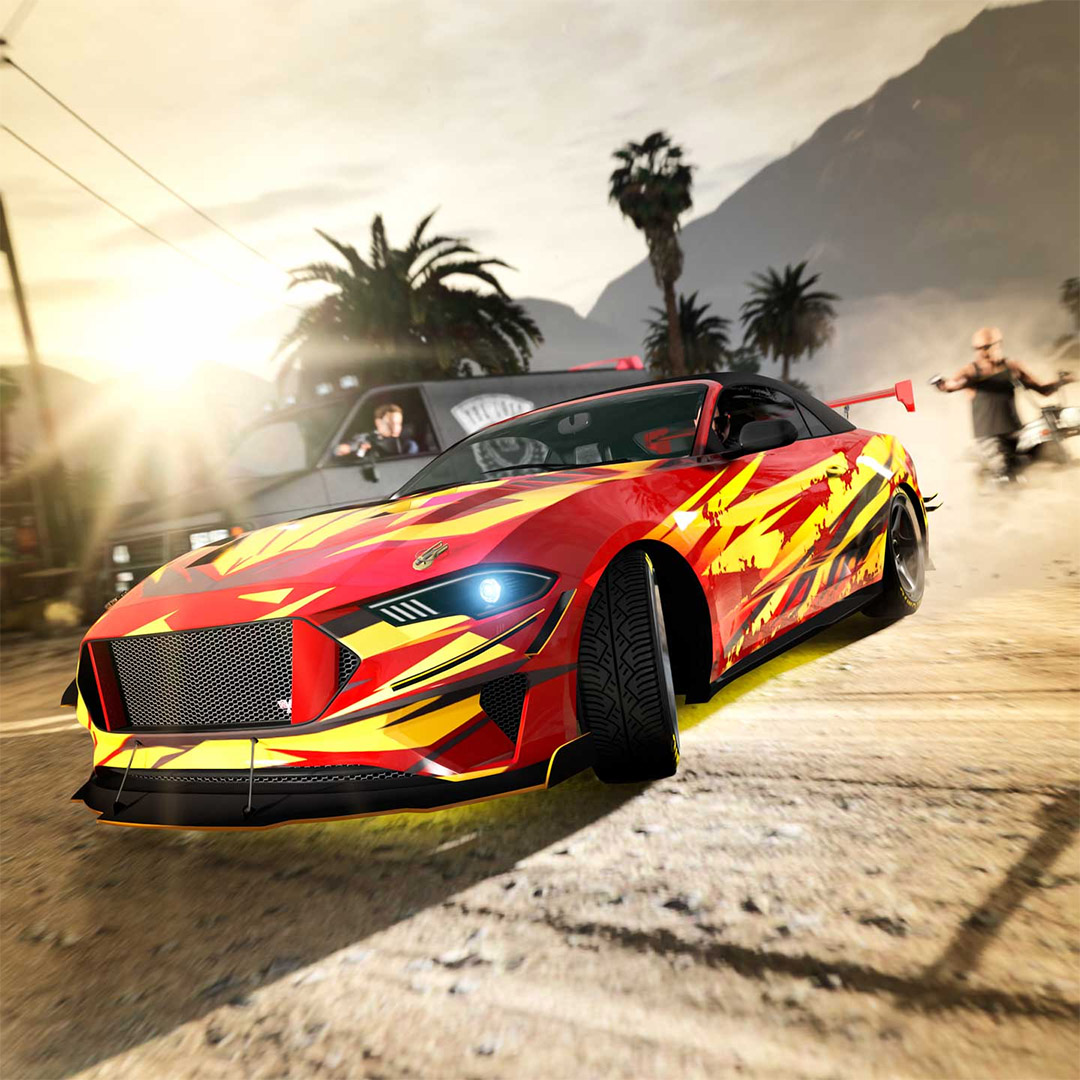 Cette nouvelle mise à jour de GTA Online : The Chop Shop vous propose un large éventail de nouveaux véhicules y compris l’éblouissante nouvelle super Turismo Omaggio de la marque Grotti, ainsi qu’un SUV polyvalent doté des capacités Imani Tech, un cabriolet élégant et un SUV tous deux dotés d’une suite complète. Vous avez également le droit à des mises à niveau disponibles de Hao’s Special Works sur PS5 et Xbox Series X|S, et plus encore.