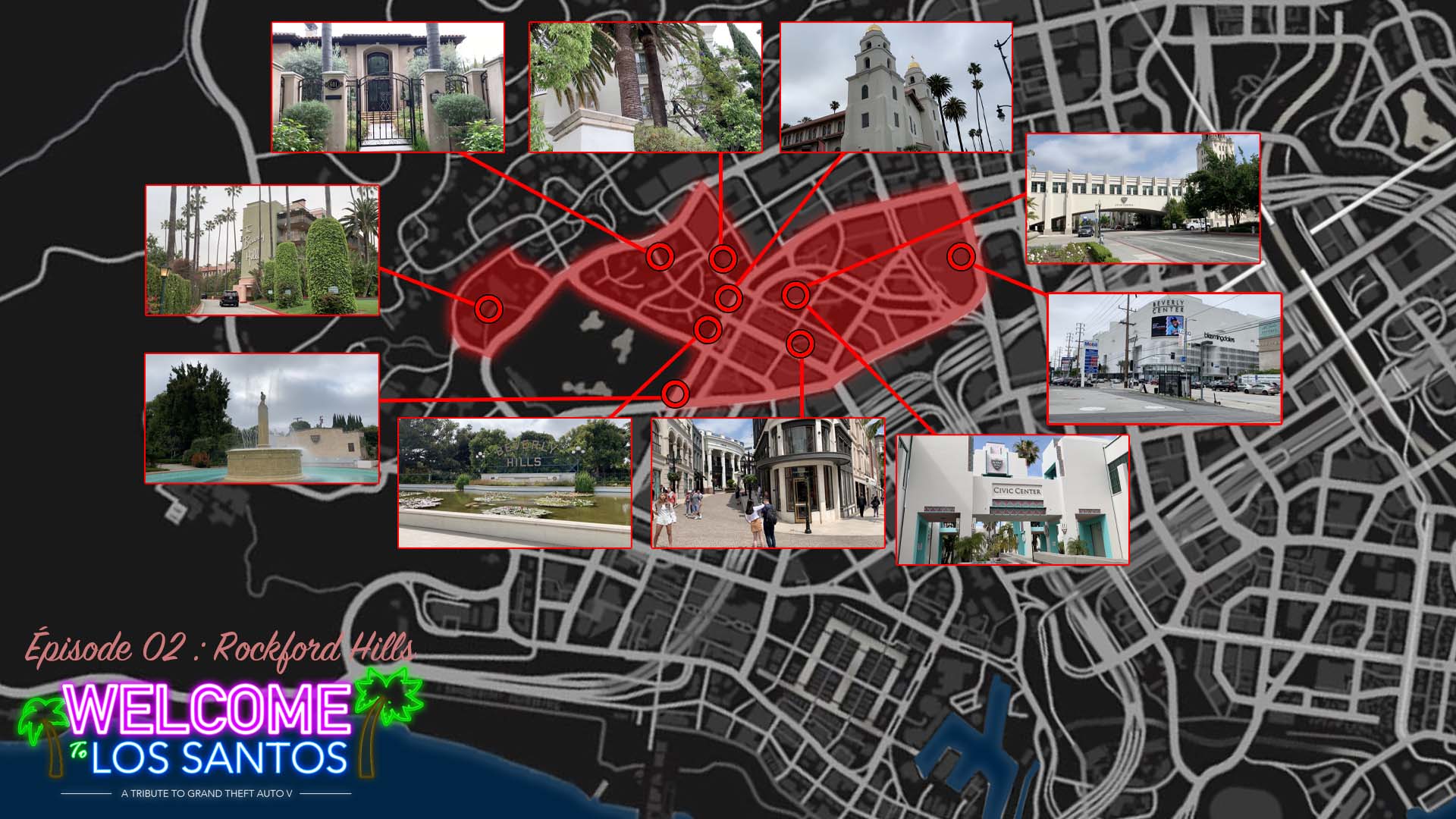 Au cours de ce deuxième épisode, nous vous proposons de découvrir une dizaine de lieux emblématiques de Rockford Hills ! Du fameux Rockford Plaza avec son saut unique, jusqu’au Civic Center près du commissariat de Police, le panneau Rockford Hills ainsi que The Richman Hotel… Tout est là !